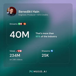 "Benedikt provides top quality service. In addition to his professional know-how and equipment, he excels in patience, efficiency and attention to detail. Working with him was a very positive experience: Benedikt Hain was friendly, helpful and had a keen ear for translating the energy of a song into the mix!"